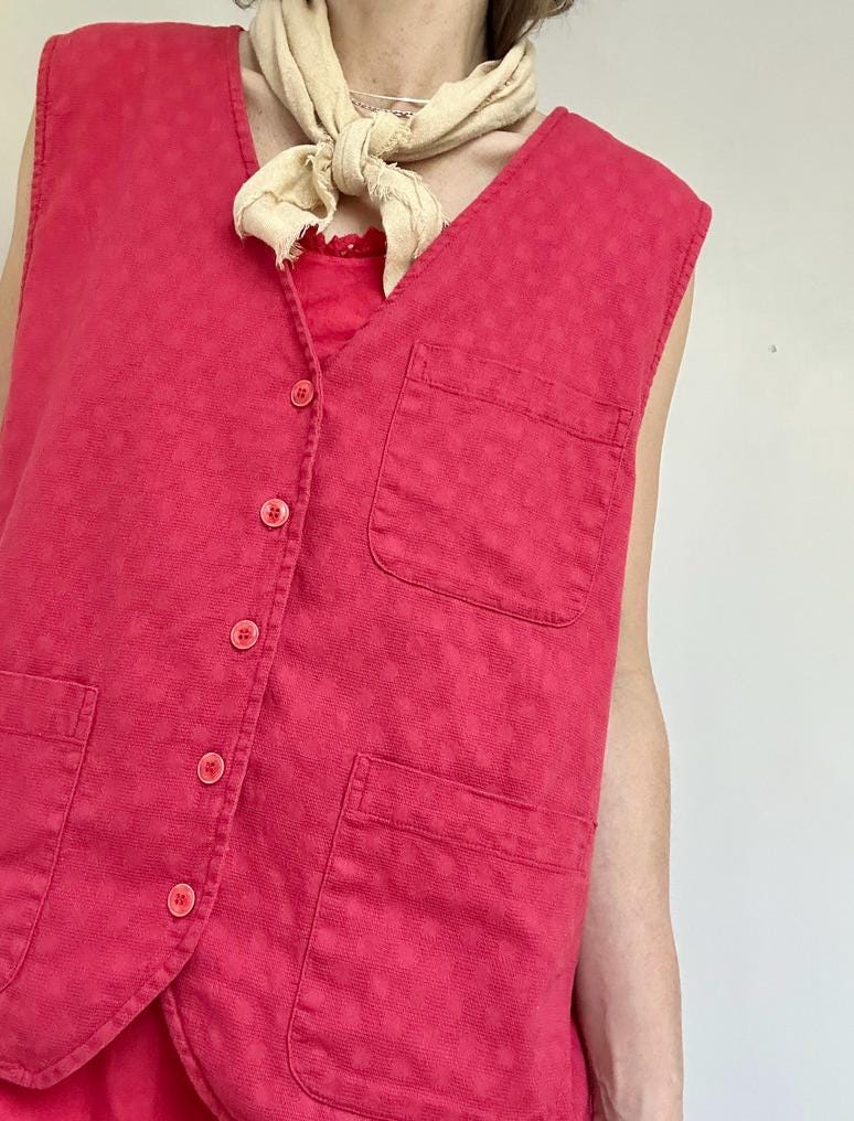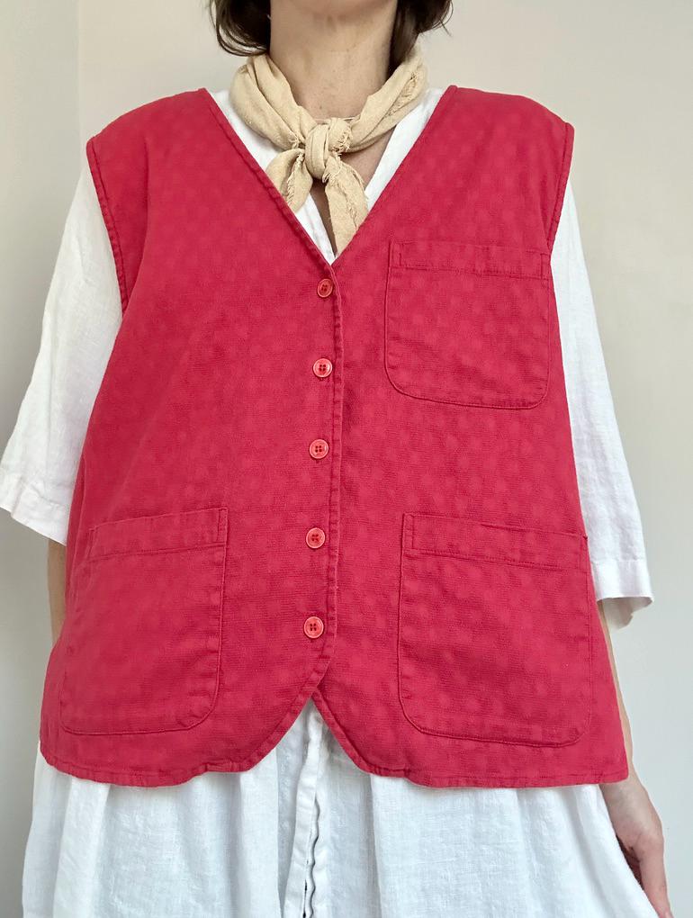 80s LL Bean textured cotton utility vest in Poppy