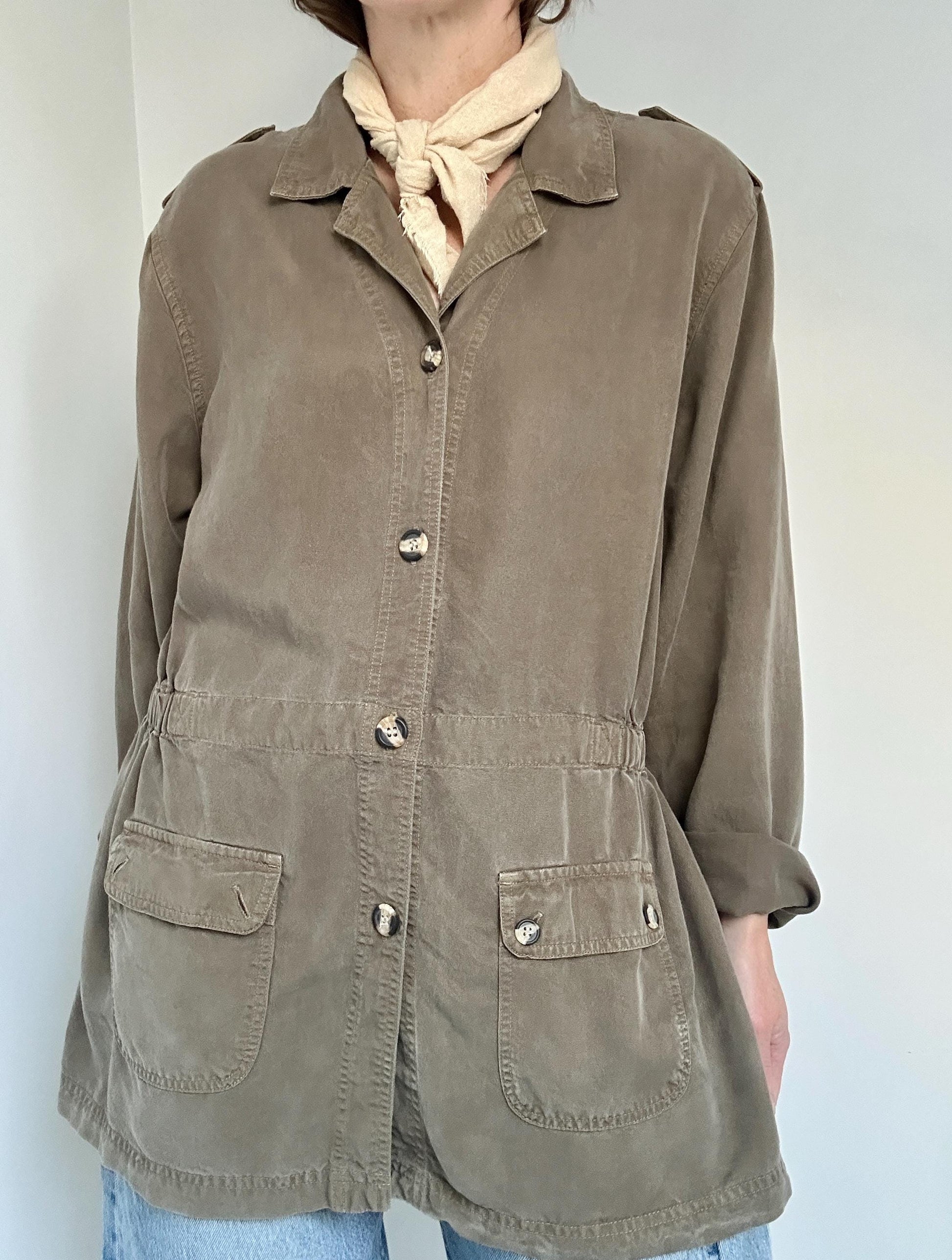 90s Bloomingdale’s tencel surplus jacket in Olive