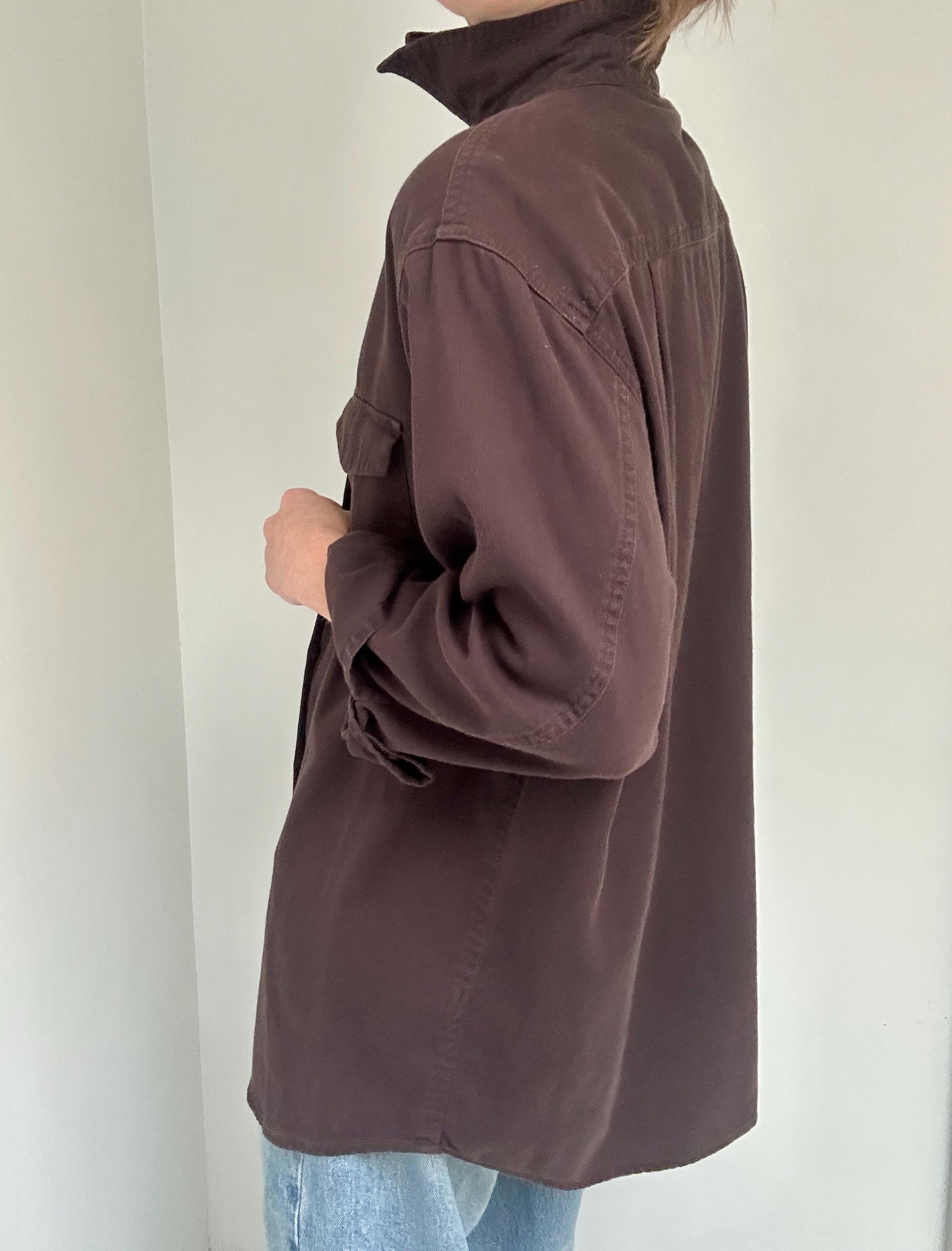 90s Campagnie Internationale Express minimalist adventure button in Carob