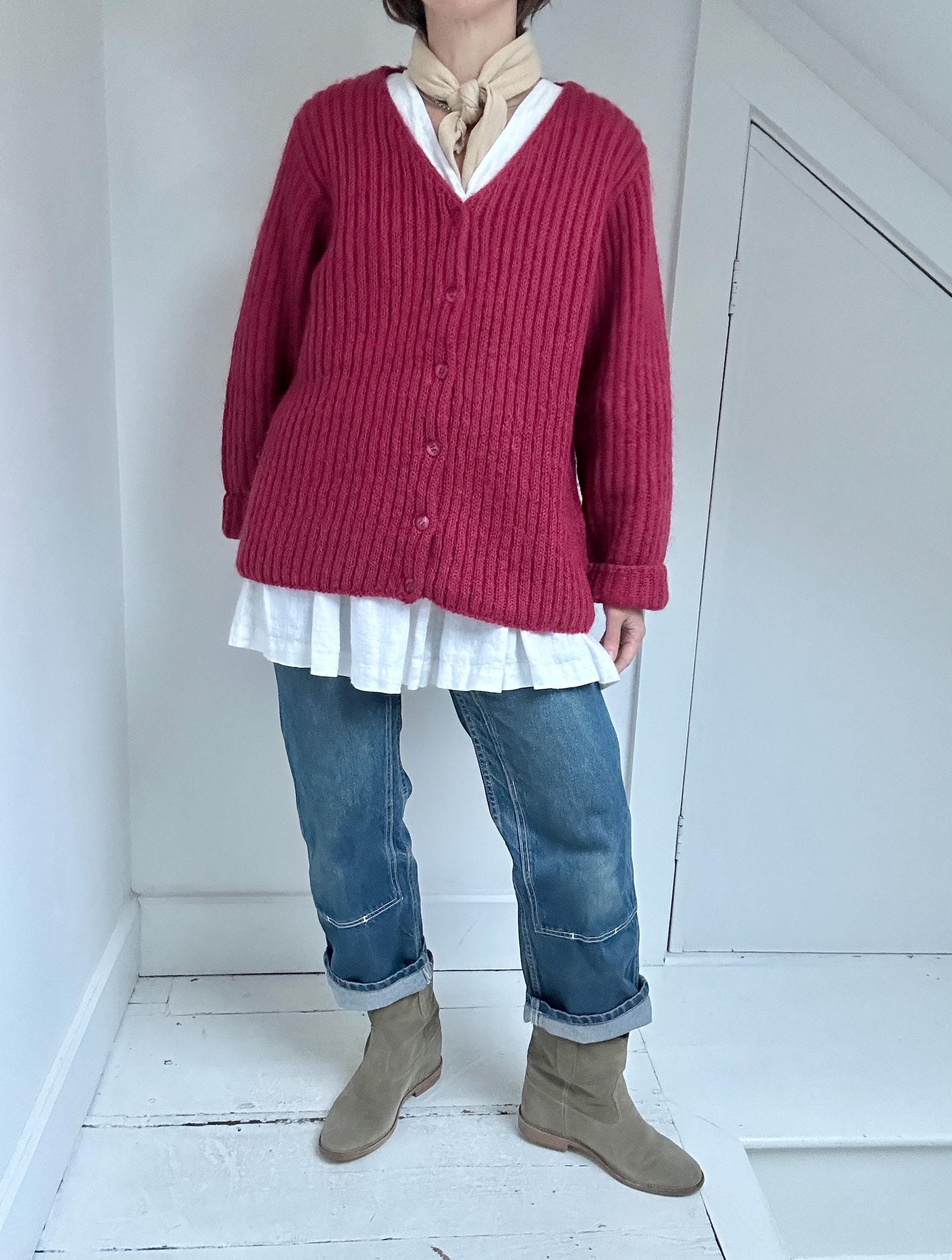80s LL Bean mohair rib cardi in Berry. Dreamy soft and broken in plush mohair / cotton blend.