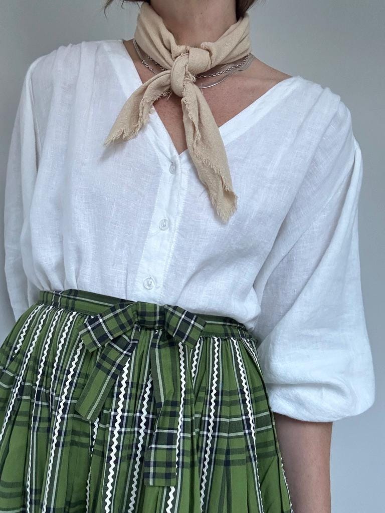 Midcentury Lanz bow-front full pleat skirt in Avocado Plaid. So dreamy! Feels like all cotton
